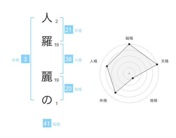 人羅 麗のさんの天格は21画の5点!