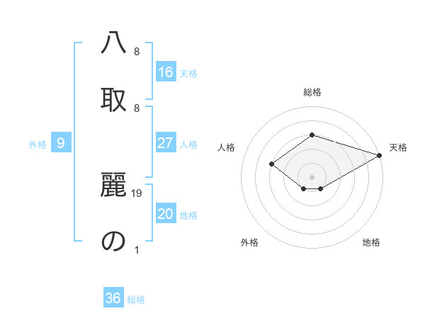八取 麗のさんの総格は36画の3点!