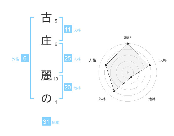 古庄 麗のさんを姓名の画数から五運を鑑定