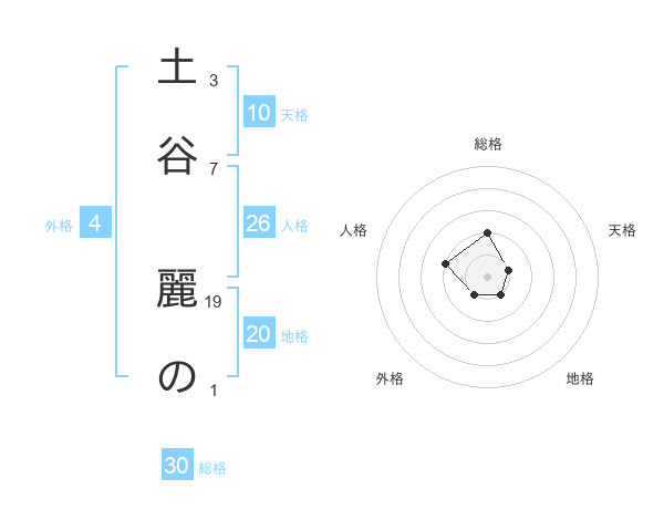 土谷 麗のさんを姓名の画数から五運を鑑定