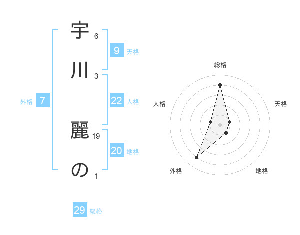 宇川 麗のさんの総格は29画の4点!