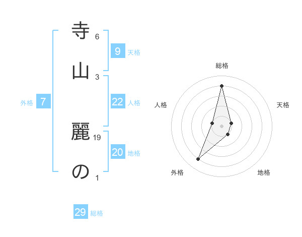 寺山 麗のさんの総格は29画の4点!