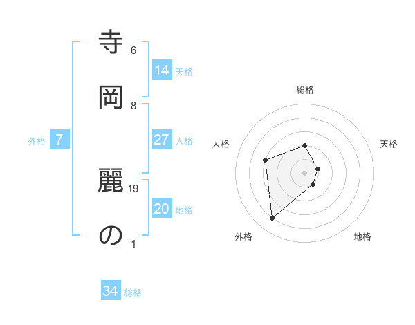 寺岡 麗のさんを姓名の画数から五運を鑑定