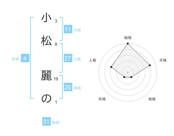 小松 麗のさんの天格は11画の4点!