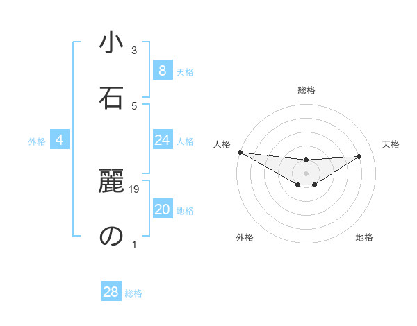 小石 麗のさんの地格は20画の1点!