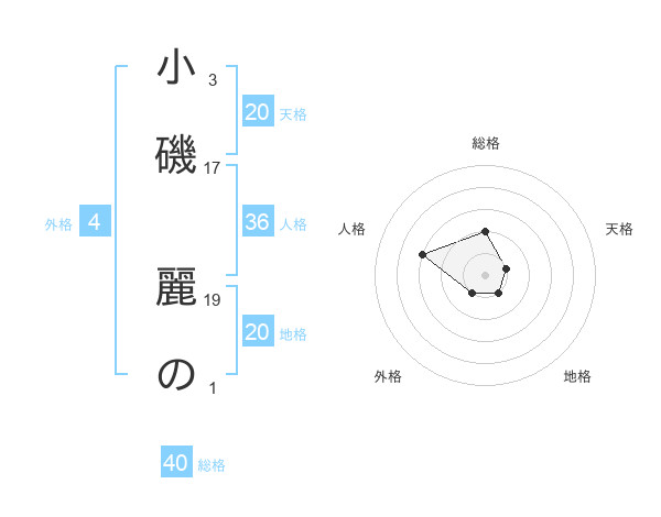 小磯 麗のさんの天格は20画の1点!