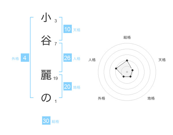 小谷 麗のさんを姓名の画数から五運を鑑定
