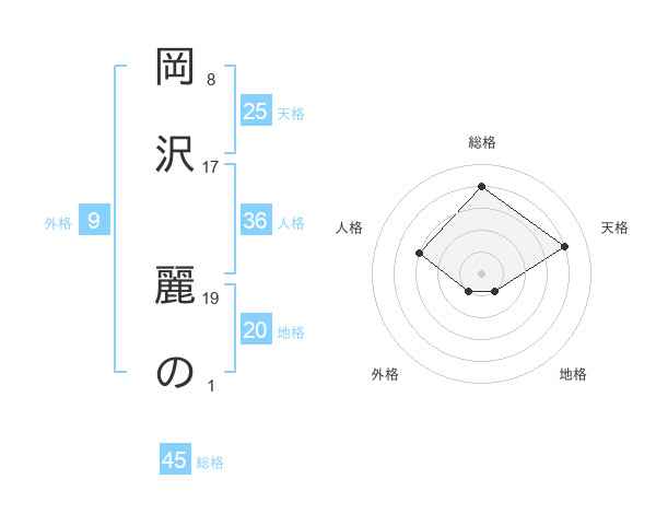 岡沢 麗のさんの総格は45画の4点!