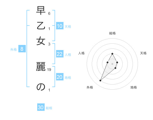 早乙女 麗のさんを姓名の画数から五運を鑑定