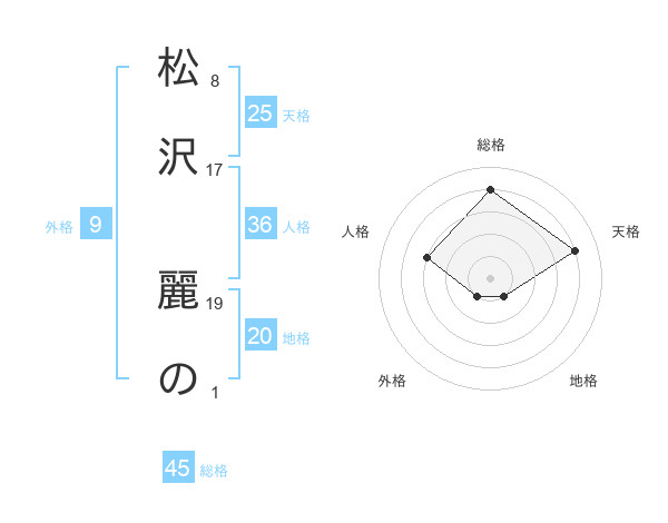 松沢 麗のさんの天格は25画の4点!