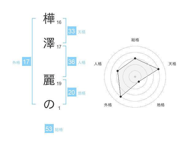 樺澤 麗のさんの天格は33画の4点!