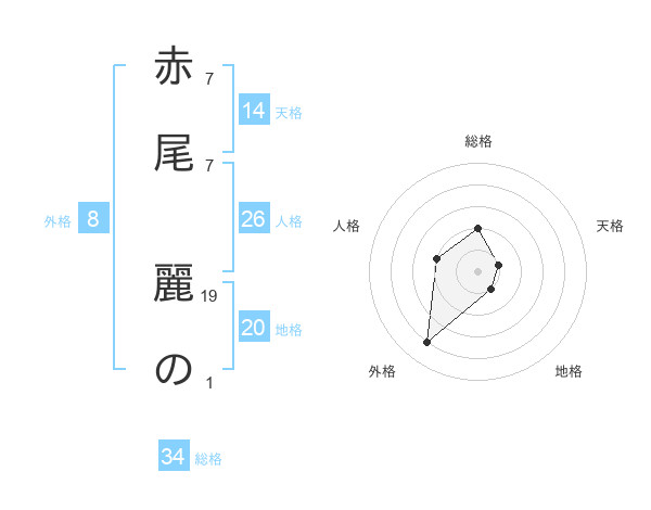 赤尾 麗のさんの天格は14画の1点!
