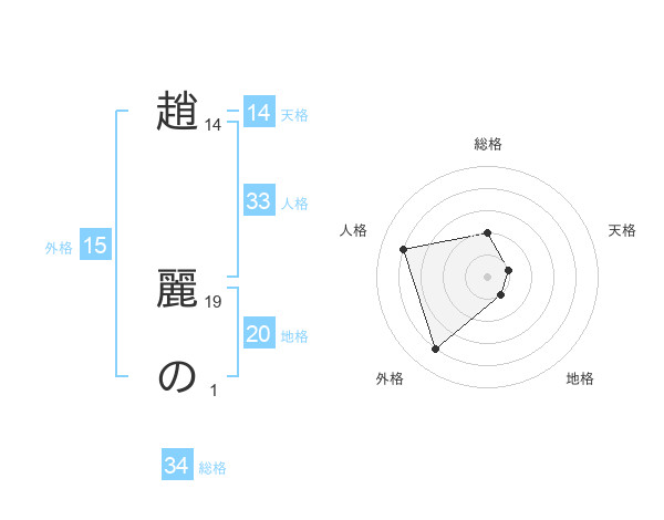 趙 麗のさんの総格は34画の2点!