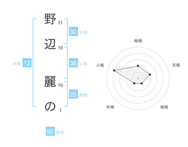 野辺 麗のさんを姓名の画数から五運を鑑定