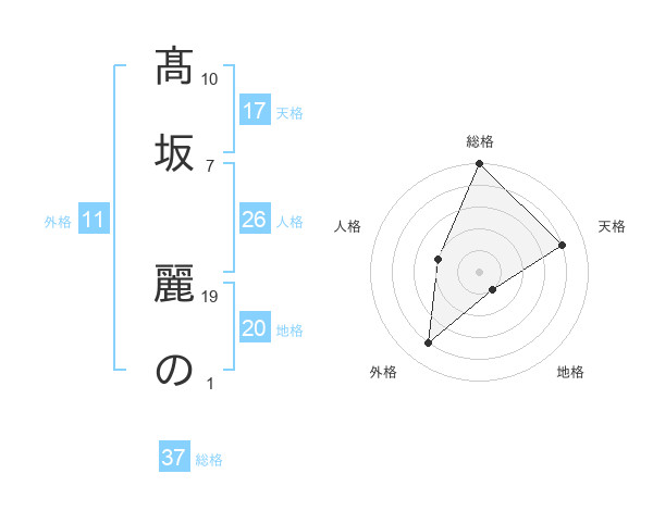 髙坂 麗のさんを姓名の画数から五運を鑑定