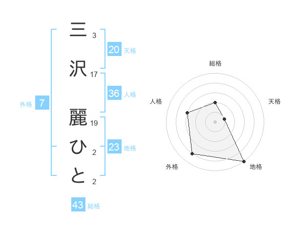 三沢 麗ひとさんを姓名の画数から五運を鑑定