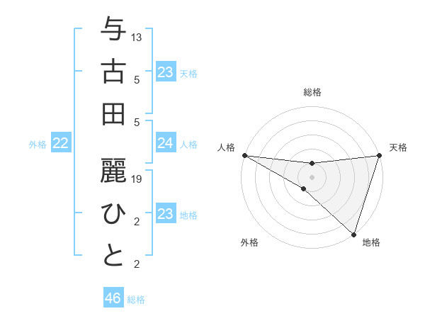 与古田 麗ひとさんを姓名の画数から五運を鑑定