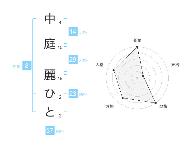 中庭 麗ひとさんを姓名の画数から五運を鑑定