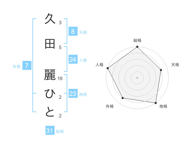 久田 麗ひとさんを姓名の画数から五運を鑑定