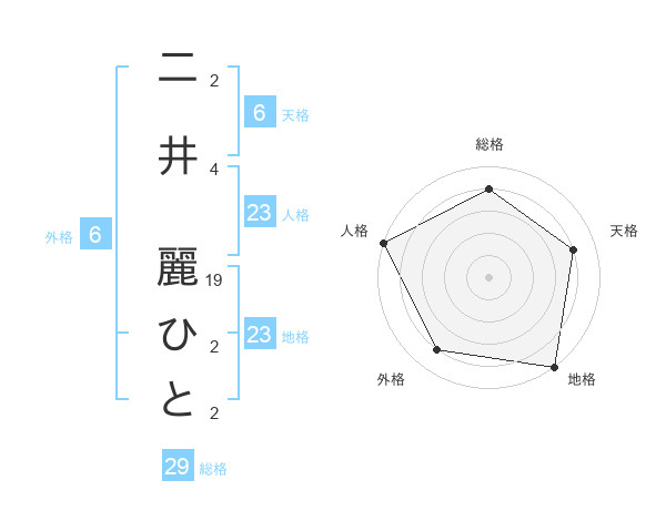 二井 麗ひとさんの天格は6画の4点!