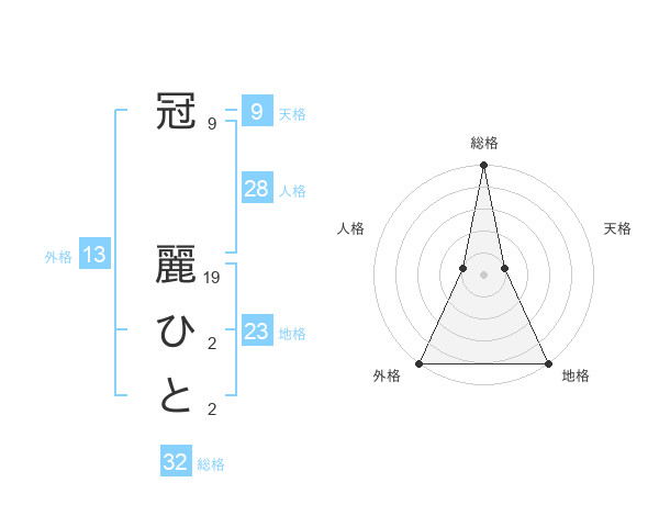 冠 麗ひとさんを姓名の画数から五運を鑑定