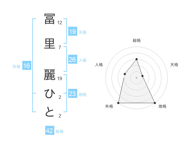 冨里 麗ひとさんの総格は42画の3点