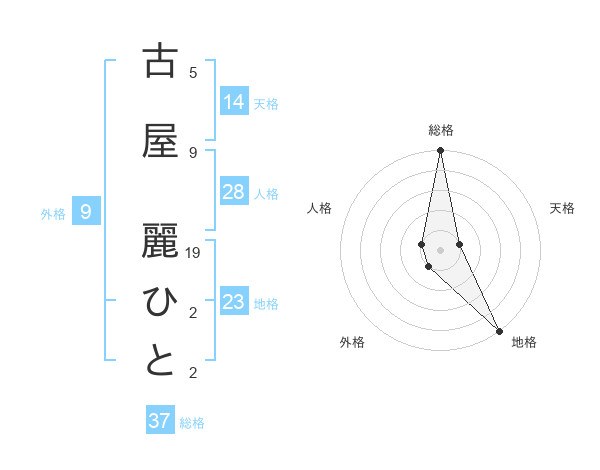 古屋 麗ひとさんを姓名の画数から五運を鑑定
