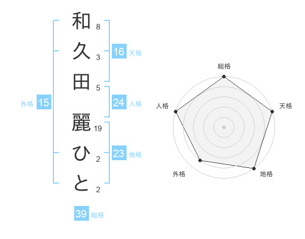 和久田 麗ひとさんの天格は16画の5点!