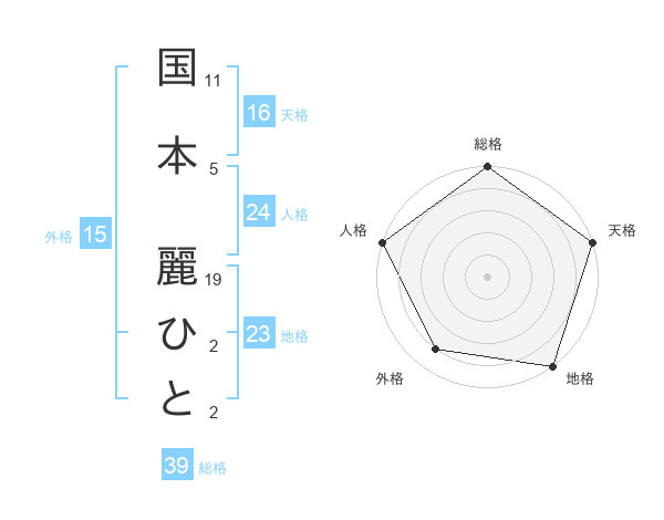 国本 麗ひとさんを姓名の画数から五運を鑑定