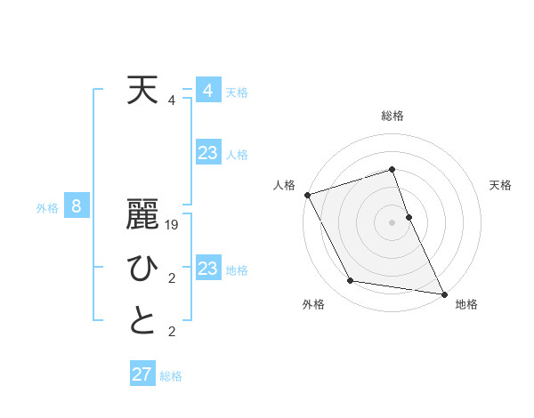 天 麗ひとさんの地格は23画の5点!