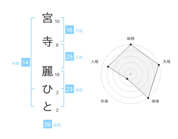 宮寺 麗ひとさんの天格は16画の5点!