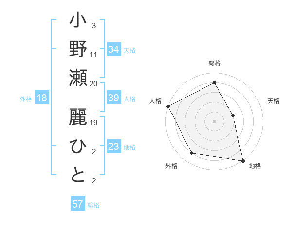 小野瀬 麗ひとさんの地格は23画の5点!
