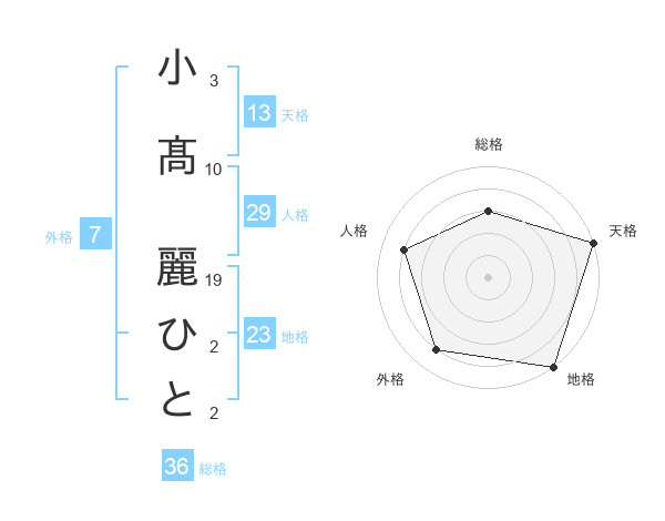 小髙 麗ひとさんを姓名の画数から五運を鑑定