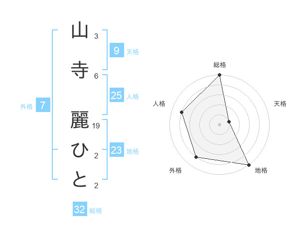 山寺 麗ひとさんを姓名の画数から五運を鑑定