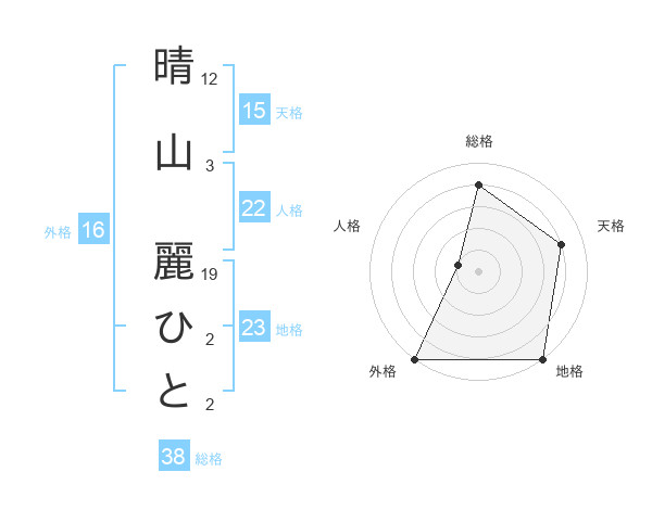 晴山 麗ひとさんを姓名の画数から五運を鑑定