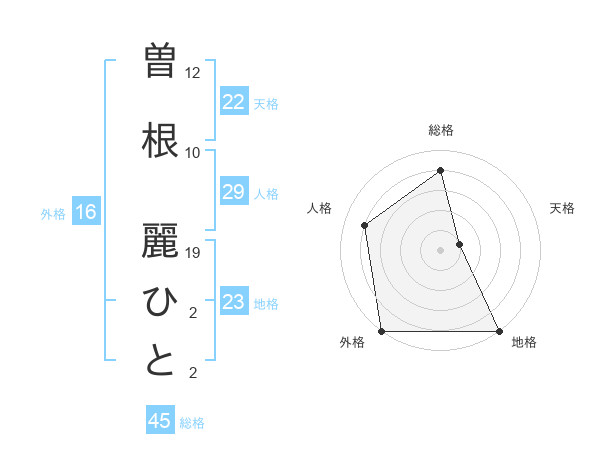 曽根 麗ひとさんの総格は45画の4点!