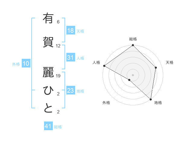 有賀 麗ひとさんを姓名の画数から五運を鑑定