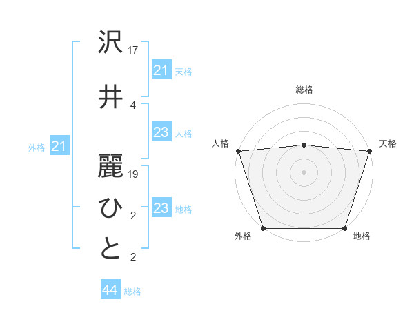 沢井 麗ひとさんを姓名の画数から五運を鑑定