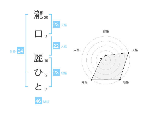 瀧口 麗ひとさんの天格は23画の5点!
