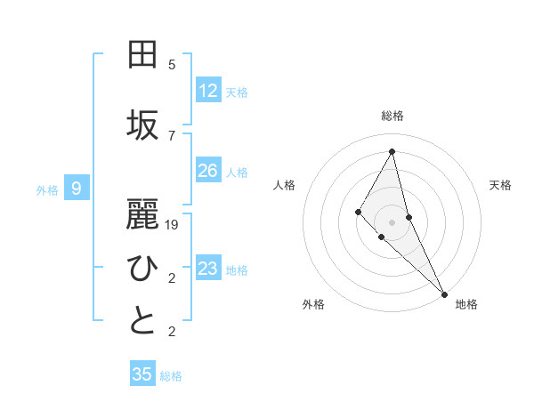 田坂 麗ひとさんを姓名の画数から五運を鑑定