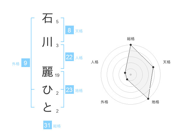 石川 麗ひとさんの総格は31画の5点!