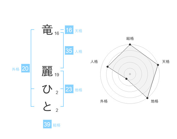 竜 麗ひとさんを姓名の画数から五運を鑑定