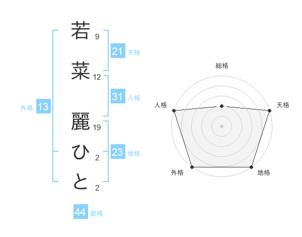 若菜 麗ひとさんの外格は13画の5点!