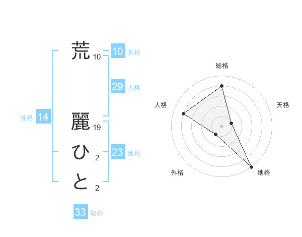 荒 麗ひとさんを姓名の画数から五運を鑑定