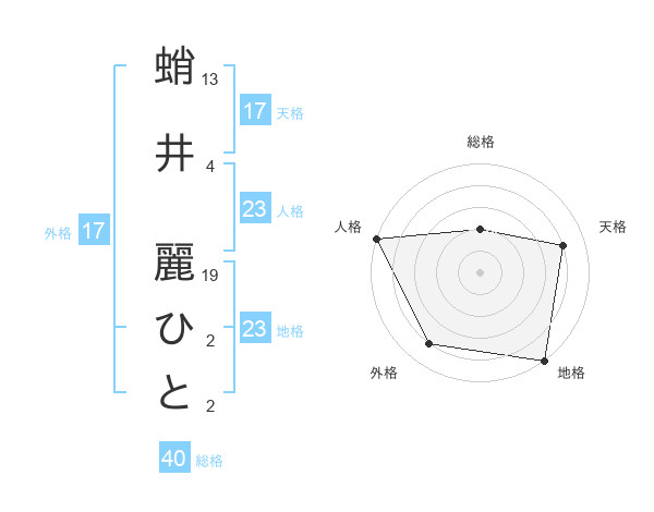 蛸井 麗ひとさんの地格は23画の5点!