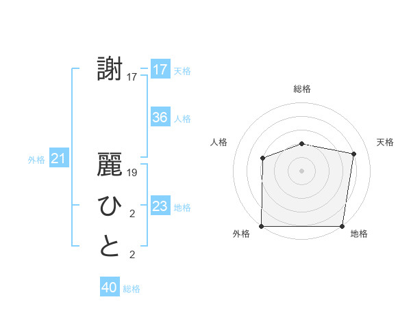 謝 麗ひとさんを姓名の画数から五運を鑑定