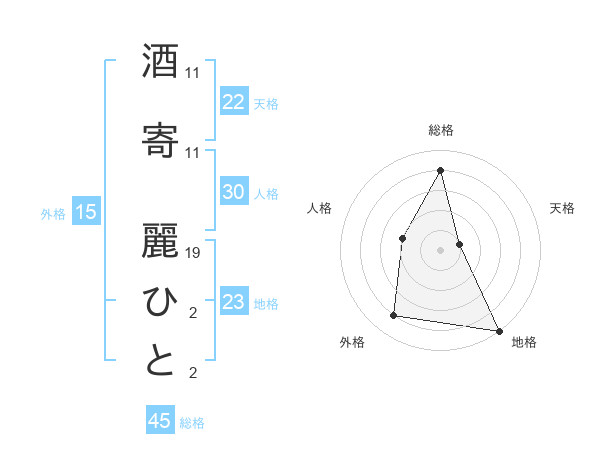 酒寄 麗ひとさんを姓名の画数から五運を鑑定