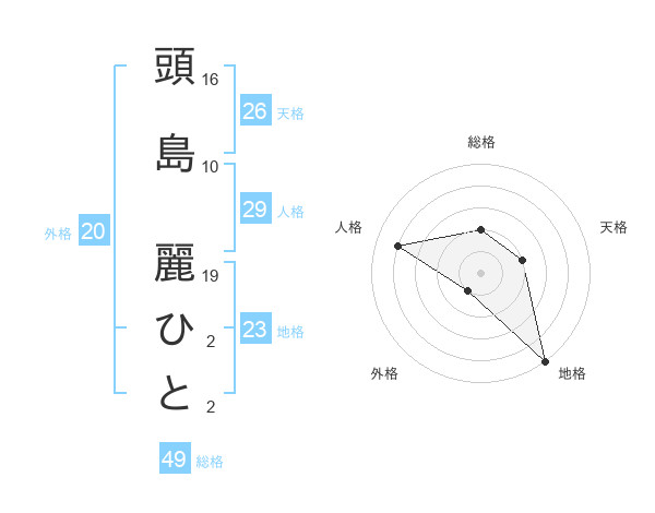 頭島 麗ひとさんを姓名の画数から五運を鑑定