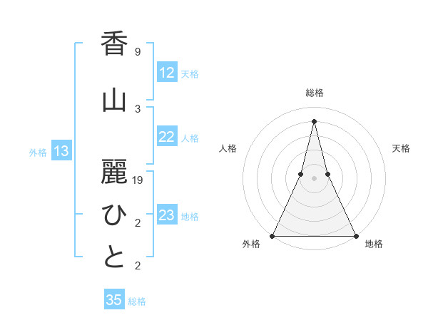 香山 麗ひとさんの総格は35画の4点!