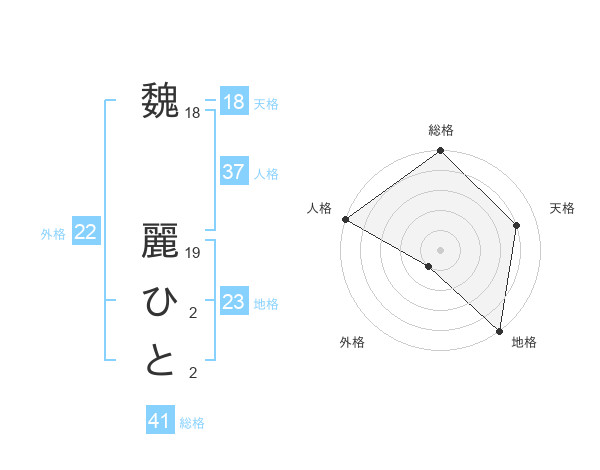 魏 麗ひとさんの総格は41画の5点!